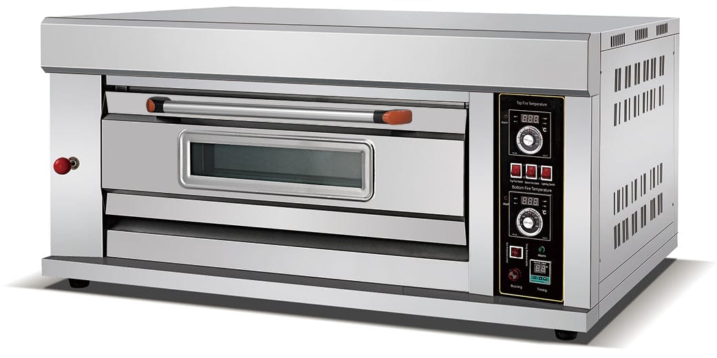 Compact 1-deck, 2-tray gas oven with 20-400?C range, ideal for small to medium commercial baking needs.