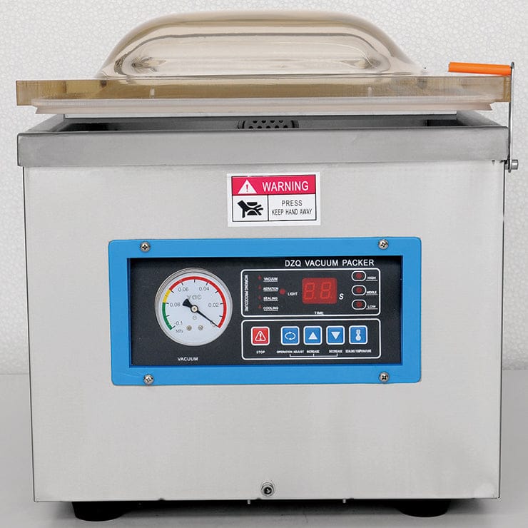 Compact vacuum packing machine with 300mm sealing width, 0.75KW motor, perfect for preserving freshness in commercial kitchens.