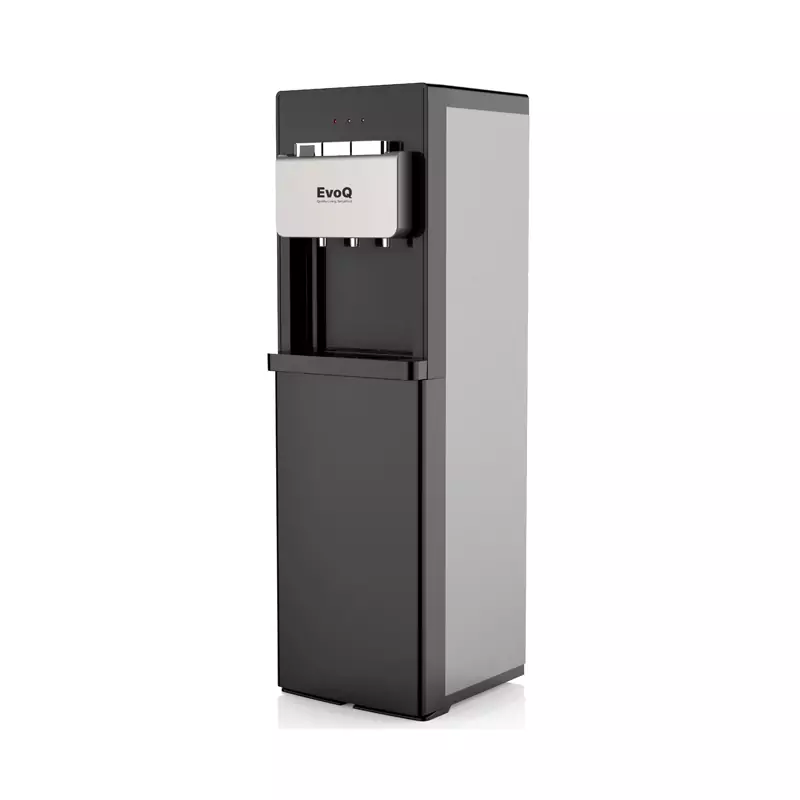 This silver water dispenser offers convenient access to hot and cold water with 3 taps and a storage cabinet. Compressor cooling and a 24-month compressor warranty ensure reliable performance.