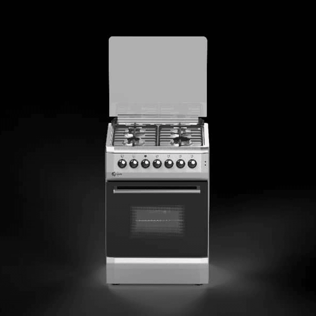 Prepare meals efficiently with this 4-burner gas cooker. Features a spacious cooking surface and an electric oven for baking and roasting.